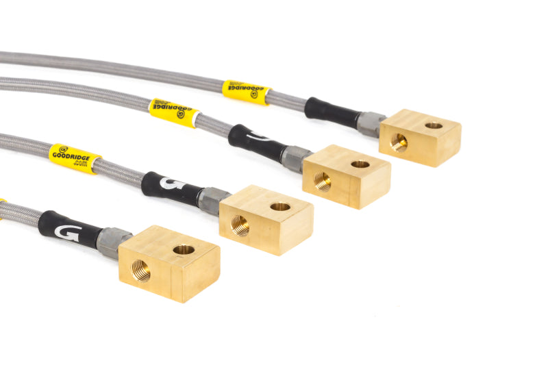 Goodridge stainless steel brake or clutch hose kits are available to suit all models of car, whatever the make. Kits feature the finest quality hose, consisting of a PTFE inner with a stainless steel outerbraid. This eliminates the spongy pedal feel under arduous conditions, giving greater braking efficiency or clutch operation as well as providing superior resistance to abrasion and corrosion. These kits, therefore, not only provide the reliability and safety demanded but offer brilliant good looks that improve the appearance of any installation. Most brake and clutch lines car kit specifications are on file but any additional information is always appreciated
